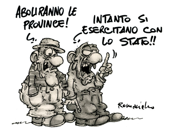 Ebbene, si possono colpire realmente gli sprechi, i privilegi ed i costi istituzionali senza diminuire ulteriormente il già ridicolo livello di democrazia del nostro paese, quindi senza abolire organi elettivi? Scusate, ci vuole tanto a decimare, non solo dimezzare, gli stipendi, i rimborsi, gli sconti, i servizi at personam e tutto il resto delle spese avulse da ogni utilità sociale e culturale causate non dalla politica in sé, ma da una classe dirigente incancrenita e pestilenziale a tutti i livelli? Ci vuole tanto a capire che diminuire il potere di ogni singolo cittadino, per esempio con questo tipo di abolizioni o con l’incessante proposizione di leggi elettorali maggioritarie, aumenta gli sprechi perché rafforza il legame ormai cementato tra le poltrone ed i flaccidi sederi di chi ci si è già seduto?